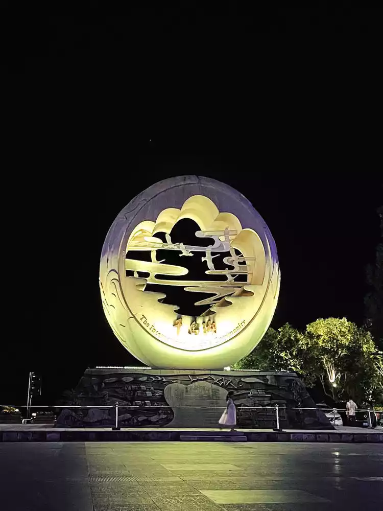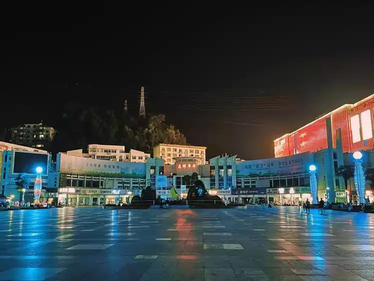 We passed by here during the day when we were on the bus. It was bustling with people and very lively. When we came here again at around 9 o'clock in the evening, the square became unusually quiet. Maybe the aunties who were dancing in the square had gone home.