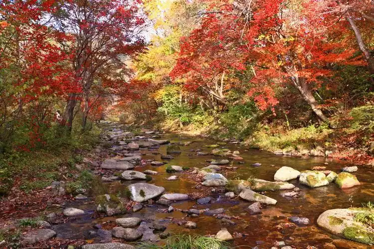 Along the Honkan Line are not only rolling hills but also countless rivers and streams, complementing each other: where there are mountains, there are maple leaves, and where there are maple leaves, there are trickling streams. There are numerous local farmhouses, offering home-style meals and accommodations. If time permits, you can stay overnight. Most of these have rural kangs, which are full of local flavor. To attract tourists, farmhouses are often built along streams or rivers. Another benefit of staying here is that you can enjoy the autumn scenery along the stream from your home, and at night, you can sit on the bank and look at the starry sky.