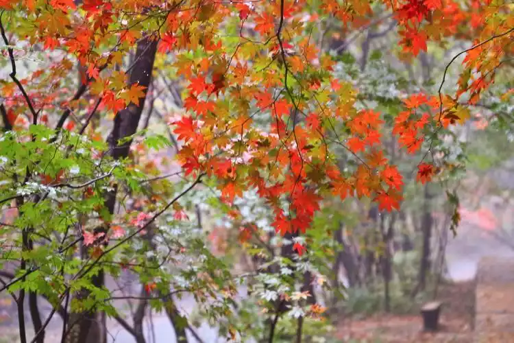 Walking under the tree, the maple tree is even more shocking. The crown of the tree extends in all directions, and each tree presents maple leaves of different colors. Its temperament has a unique beauty from other maple trees, as if it is wearing a new autumn dress.