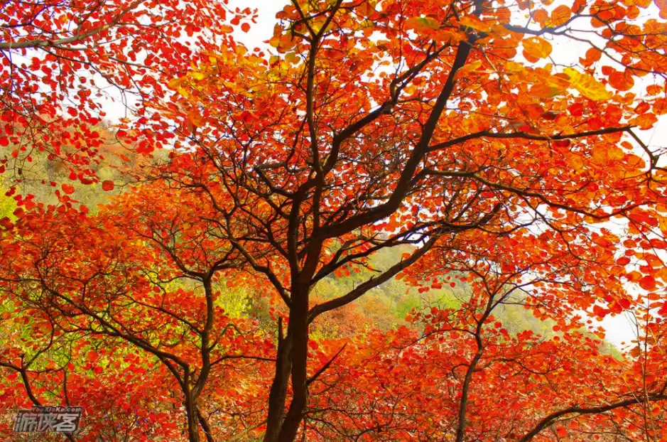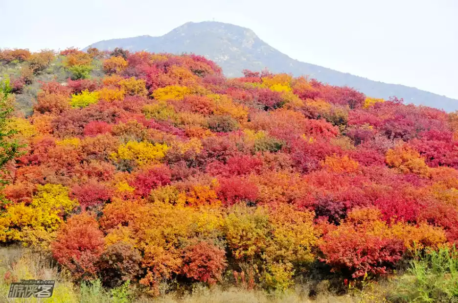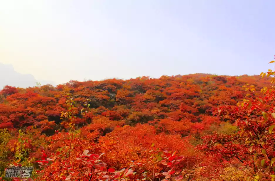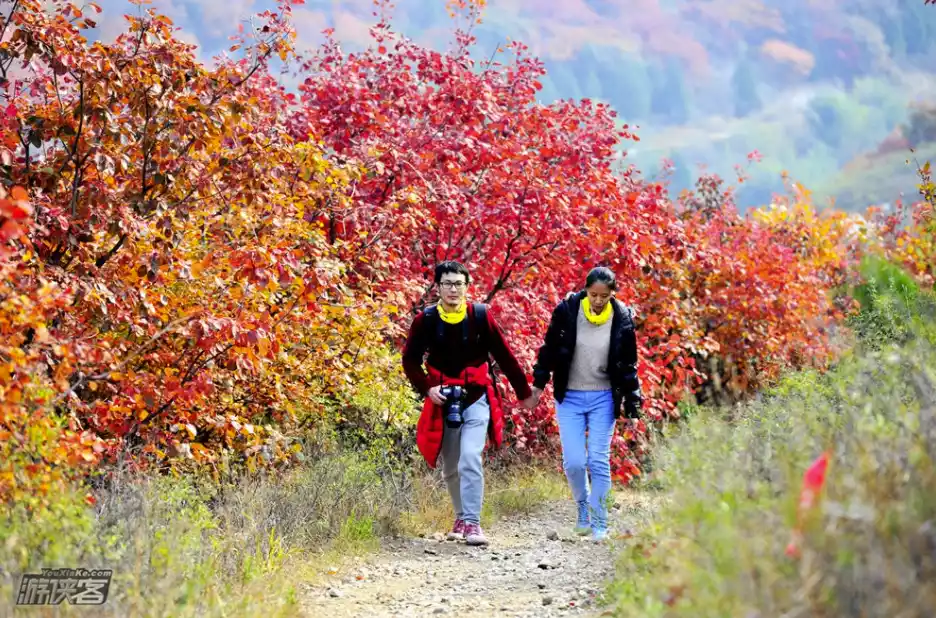 Pofengling is a representative autumn viewing spot in the suburbs of Beijing. Located 3 kilometers northwest of Huangshandian Village, Zhoukoudian Town, Fangshan District, Beijing, it is adjacent to Yuxu Palace on Baojin Mountain in Beijing. The scenery here is unique, with winding stone paths and crimson leaves along the way. Looking up, the forests are shimmering in crimson, while overhead, the peaks are shrouded in mist. The crimson, unlike that of Fragrant Hill, is a dazzling crimson dotted with yellow, orange, and green, like a painter's painting. Here, visitors can not only admire the crimson leaves blanketing the mountains, but also ascend to pray for blessings and harvest the fruits of the autumn harvest.