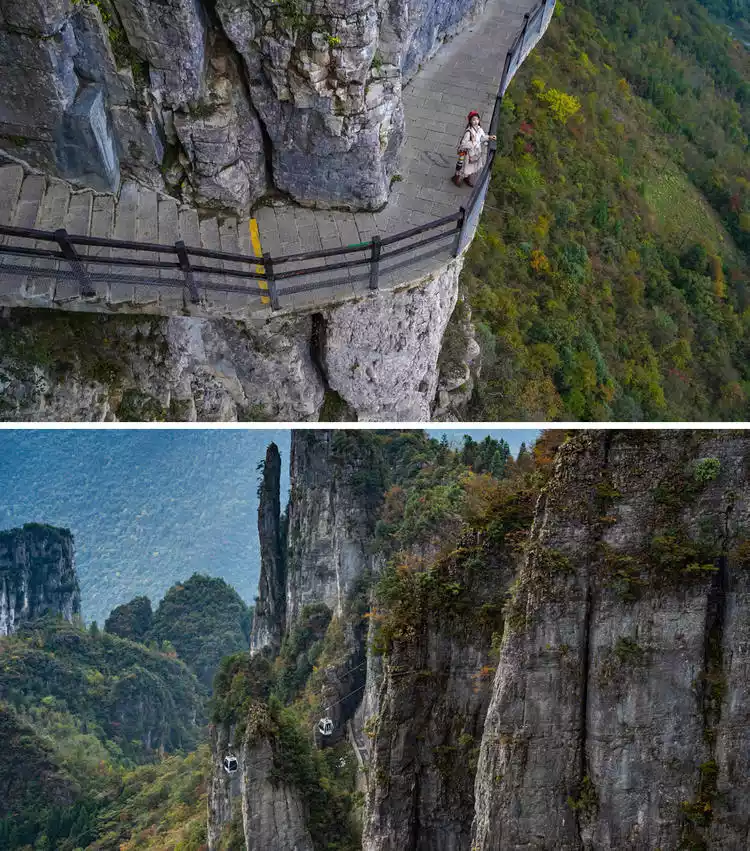 The most thrilling parts of the scenic area are the Qingyun Ladder that soars into the clouds and the cable car with a height difference of 793 meters. We took a ride on this cable car and I really have to praise it. There was a section where the angle was like a vertical descent that made my friends scream in fear. It was really thrilling.