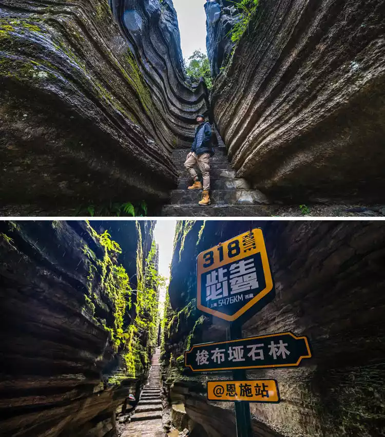 Enshi's Earth's Heart Valley gets its name from its heart-shaped, water-eroded cave entrance, and it's also located right at the 1520 km mark on National Highway G318. It's simply overflowing with love! Putting aside the gimmicks, just gaze at the twisted rocks ravaged by the earth's forces, the smooth gullies sculpted by millennia of water, and the crystal-clear brooks. Every detail reveals the wonders of nature, and if you take careful photos, you'll still be able to use up a lot of film!
