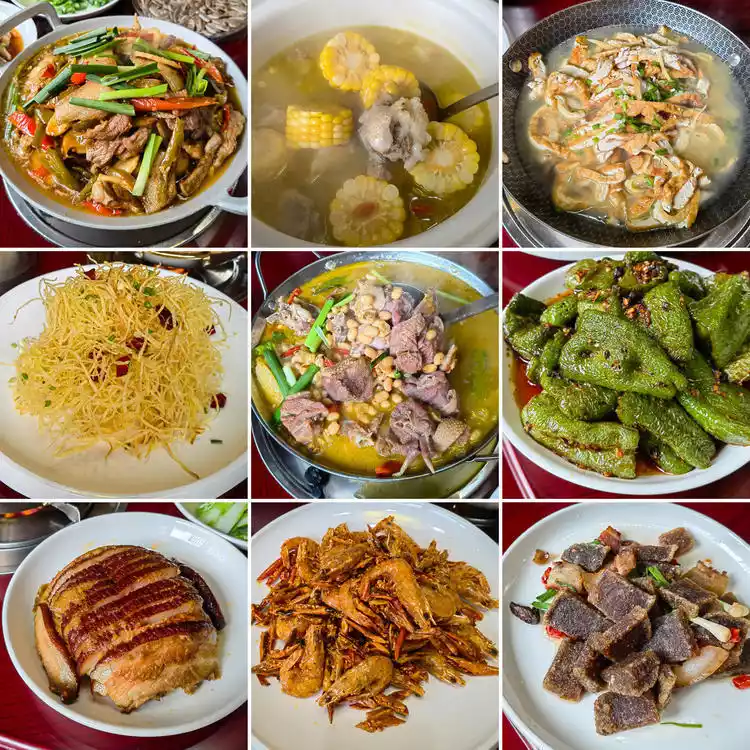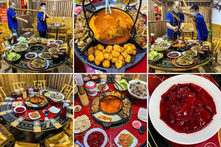 I'm particularly fond of the cured pig's trotter hotpot. The rich, savory flavor of the cured meat and the chewy, springy skin make it a must-try dish in Enshi, alongside the equally famous Hezha. A variety of fresh mushrooms, water shield, and tofu are simmered together in a pot, creating a fragrant, sizzling hot pot. The broth must be topped with fresh blood tofu and young mountain pork, complemented by soft, springy baba and chewy dried tofu. Finish with a bowl of oil tea for a truly perfect meal.