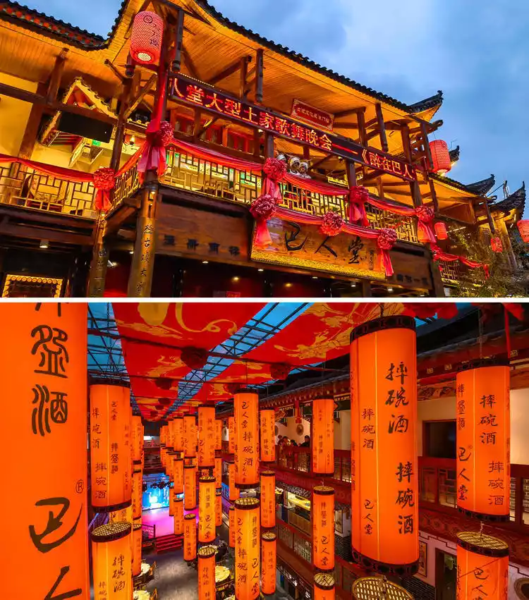 Ba Ren Tang is the first stop to experience the Daughter City. It is also a big hotel. Legend has it that this is the origin of drinking bowl-breaking wine. Watching a lively Tujia dance and folk performance, drinking a bowl of bowl-breaking wine, and eating a table of Tujia dishes in Ba Ren Tang are experiences that cannot be missed.