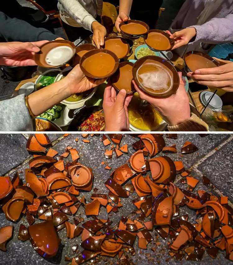 The bowl-smashing wine at Ba Ren Tang costs one yuan per bowl. It is very relaxing to drink and smash the bowl after drinking. The table next to us was smashing the bowl non-stop, and the ground was full of broken bowls. Everyone was in high spirits and their faces were flushed!