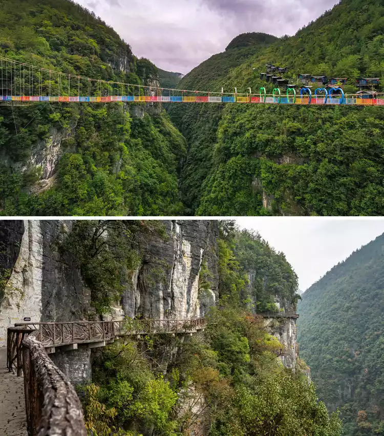 Here is also Shimen Pass, known as the "First Scenic Spot in Shinan", with its steep and beautiful scenery, and is an important junction connecting Chongqing and Yichang tourist attractions. The best route is recommended to everyone: Buy tickets at the Visitor Center - take the scenic shuttle bus - Dixin Valley Scenic Area entrance - Glass Bridge - Shuxin Valley - Xixin Valley - Bayan Ancient Road - Wenxin Valley - Sky Magic Carpet - Elevator - Take the scenic shuttle bus at the scenic area exit - arrive at the Visitor Center