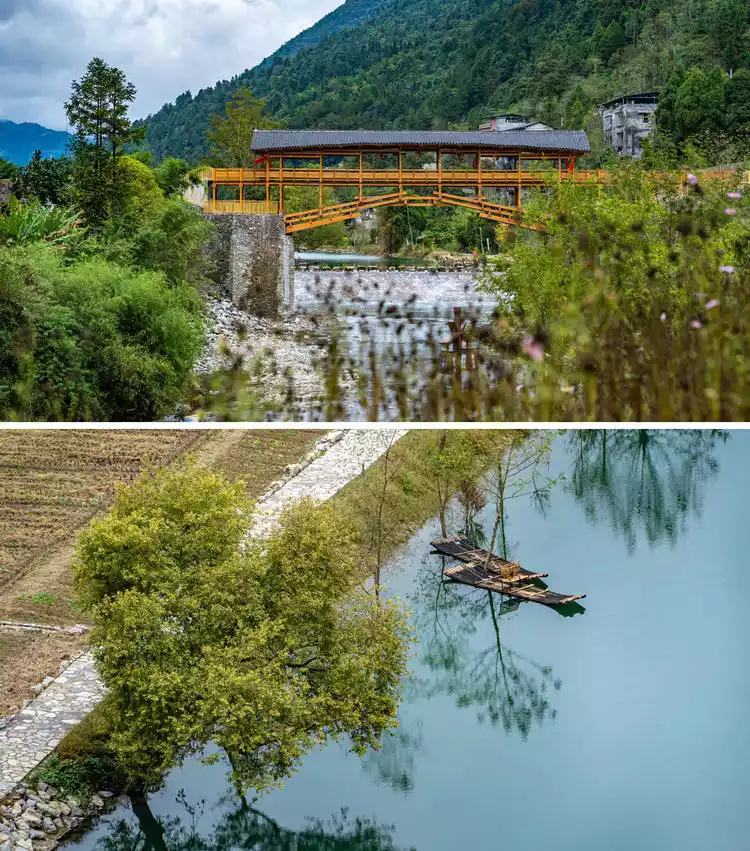 The village's eastern boundary is a ravine called "Chajigou," spanned by a century-old pavilion bridge. In front of the village, the Longtan River flows through the village, connected to the outside world by a 40-meter-long iron chain bridge. Ducks leisurely float in the river, kittens contemplate on the eaves, and a large black dog guards the old house. This is what a pastoral village, a paradise on earth, should look like.