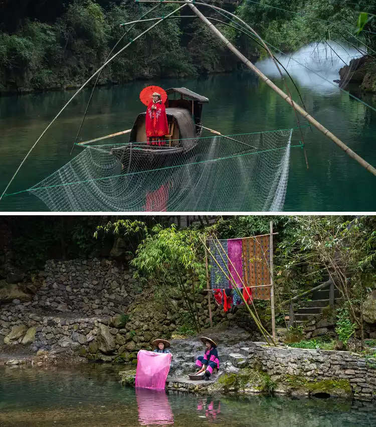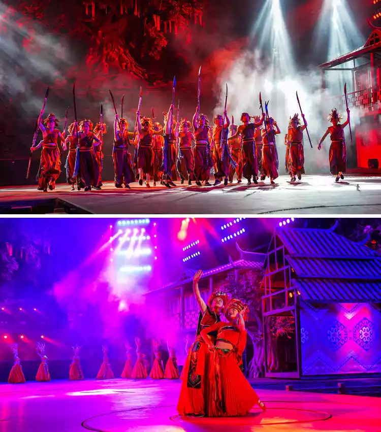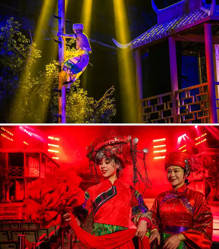 A moving song and dance show based on Tujia folklore, this is China's only pristine cave theater. Moving stilt houses, covered bridges, underwater dragon boats, a lifting stage, and digital lighting create a fusion of nature and humanity, ancient and modern. Set against the backdrop of Tujia culture, the large-scale song and dance performance "Yi Shui Li Chuan" (Yi Shui Li Chuan) by over 100 performers immerses viewers in Tujia life. Enjoying such a large-scale performance in a cave is a truly unprecedented experience.