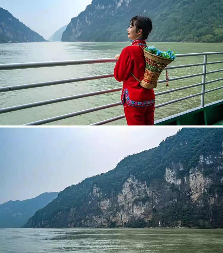 Nestled between the mountains and the water, the Three Gorges offer picturesque scenery. Traditional Three Gorges stilt houses dot the landscape. Long-lost sailboats and black-sailed boats sit quietly moored in front of homes. Young women wash clothes by the stream, wielding mallets. Leisurely fishermen cast their nets on the river. Entering a stilt house, you'll find the girls singing and dancing, their red hydrangeas about to fall.