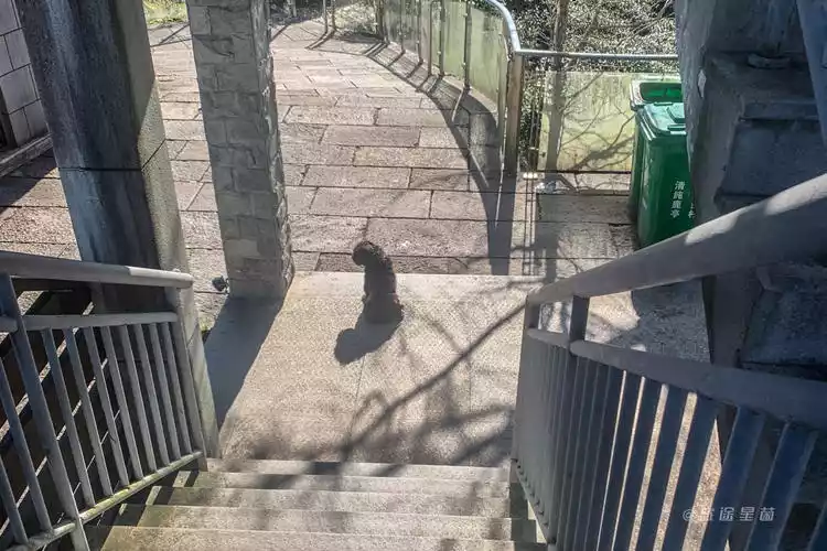 I kept checking the cameras on the observation deck, but there was no one there. The day before, there were already five or six people around 7 a.m., but today, it was almost 9 a.m. and still no one. Peng said he saw a dog, but I thought he was kidding. It took 18 minutes to drive there. The observation deck is located at the top of Shifeng Peak in Bailu Village, over 500 meters above sea level. Although it's in the village, the signs are clear. We parked the car in the parking lot and started walking along the path. It arrived in a few minutes. We actually saw a small black dog. It wasn't afraid of people and didn't chase them, so it wouldn't pose a threat to someone who's afraid of dogs.