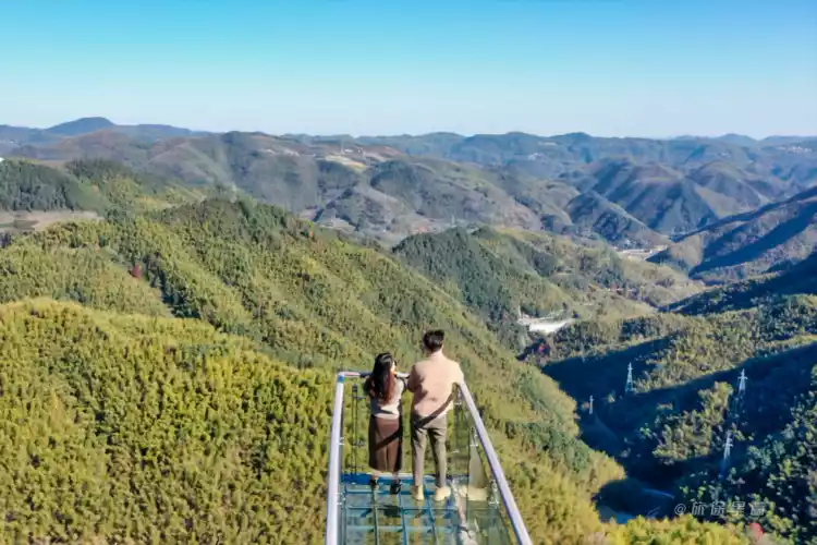 The transparent glass plank road protrudes out, and it is a bit challenging for people who are afraid of heights to go over and take pictures. The first time I walked up it, I held on to the railing and moved step by step. After walking a few times, I was not so scared anymore.