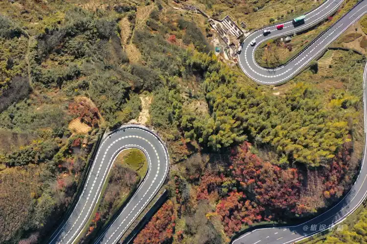 I don't know if it's the location where we took off, or my own technique, but I couldn't capture the grandeur of the winding mountain road. It looked like a plane was flying over here. We set a height limit of 120 meters, so that might be the reason. You can still see the sharp curves, though. It looks steep, but from the car, it wasn't noticeable. Peng Ge said he's a good driver, hahaha, but I'll trust him for now, after all, I can't drive.