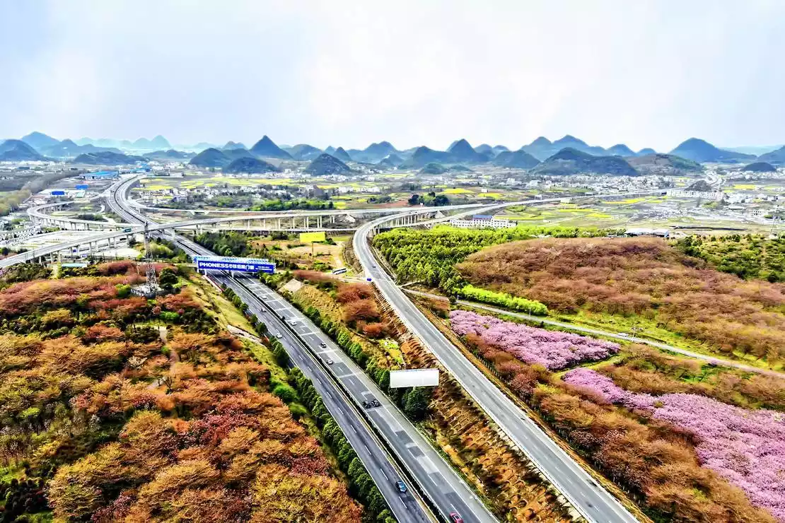 If you happen to be driving along the Shanghai-Kunming Expressway, between Guiyang and Anshun, you'll find yourself traversing a sea of flowers. Cherry blossoms flank the road, and if there's a breeze, the petals kiss the car windows, heralding the arrival of spring. Don't just indulge in the beautiful scenery; be mindful of road safety, too.