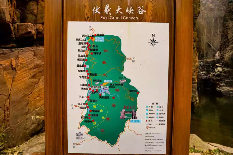 The Grand Canyon is mainly characterized by Fuxi culture and Red Stone Grand Canyon, and is divided into two parts: the upper part is mainly composed of Wolong Terrace, Cultural Tunnel, Wangxiang Terrace, Nuwa's Sky-Mending Place, Divine Turtle Broken Foot, Five-Colored Stone and other attractions, which fully reflect the formation, development, spread of Fuxi culture and its influence on later generations.