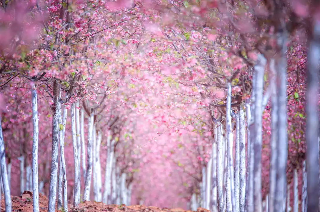 Yongfu Cherry Blossom Garden, known as "China's Most Beautiful Sea of Cherry Blossoms," boasts five times more cherry blossoms than those in Okinawa, Japan, making it a popular destination for spring cherry blossom pilgrimages.