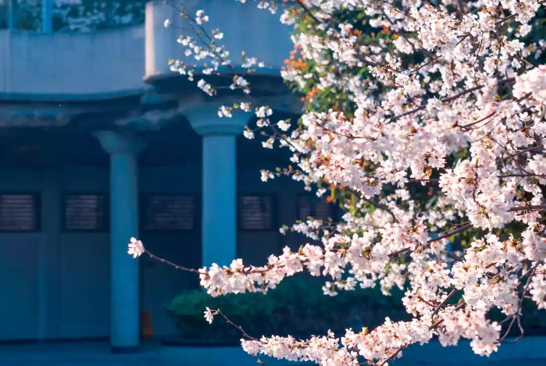 Yuantouzhu has early, mid-term and late cherry blossoms, and the flowering period lasts from early March to April. For taking portraits, cherry blossoms and pavilions are the best match. The blue cherry blossom viewing pavilion is hidden among the cherry trees.