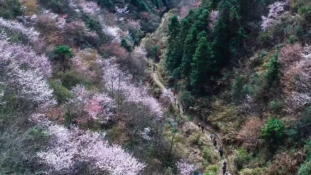 In addition to the Tianchi Lake in western Zhejiang, the cherry blossoms from March to April are also a must-see beauty on the ancient trail. The spring cherry blossoms make the Wuyue Ancient Trail even more exciting.
