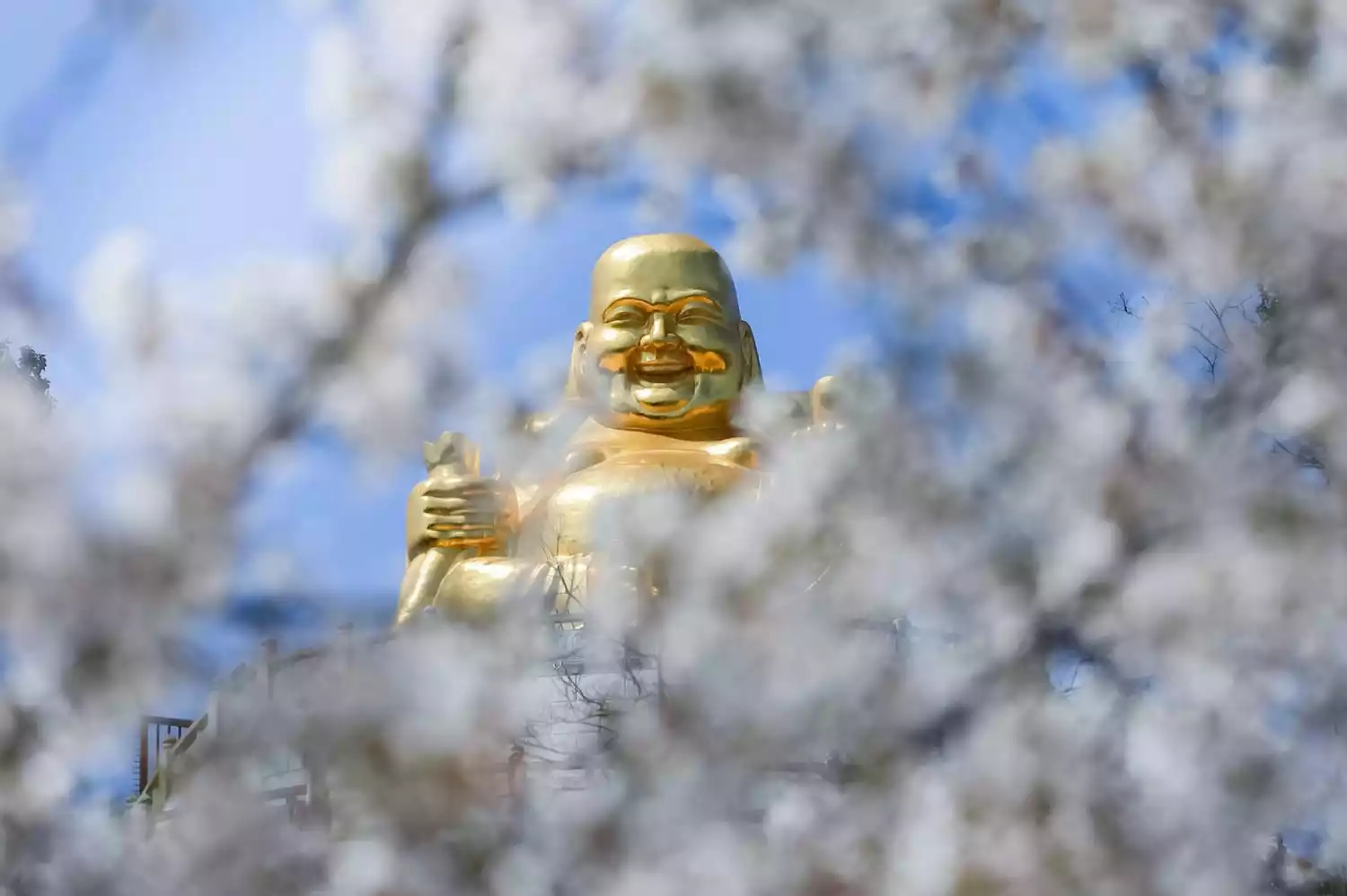 Features: Standing at Tong Guanyin Temple, overlooking Dengwei Mountain to the south and Taihu Lake to the west, the temple offers a picturesque setting, reminiscent of the lush green mountains and clear waters, and a delightful pastoral landscape. Guangfu Pagoda boasts a hundred-acre Sino-Japanese Friendship cherry blossom forest and dozens of acres of camphor and chestnut trees, creating a tranquil and elegant environment.