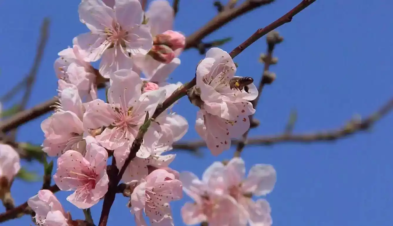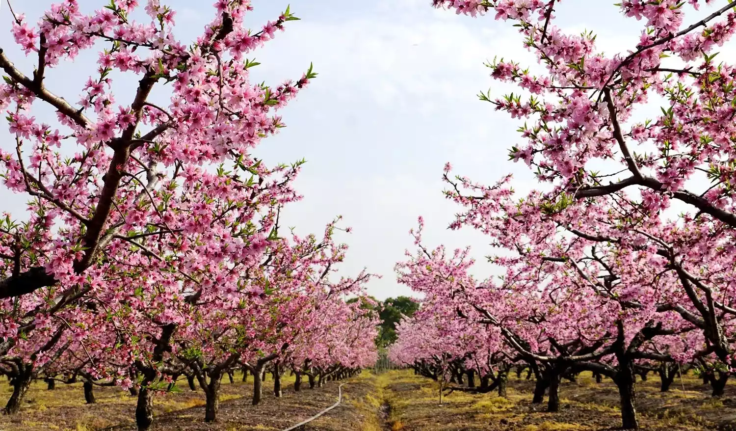 When the peach blossoms bloom, they are bright and dazzling. From afar, they are as bright red as ten miles, like smoke and clouds, dreamy, intoxicating, soft and elegant.