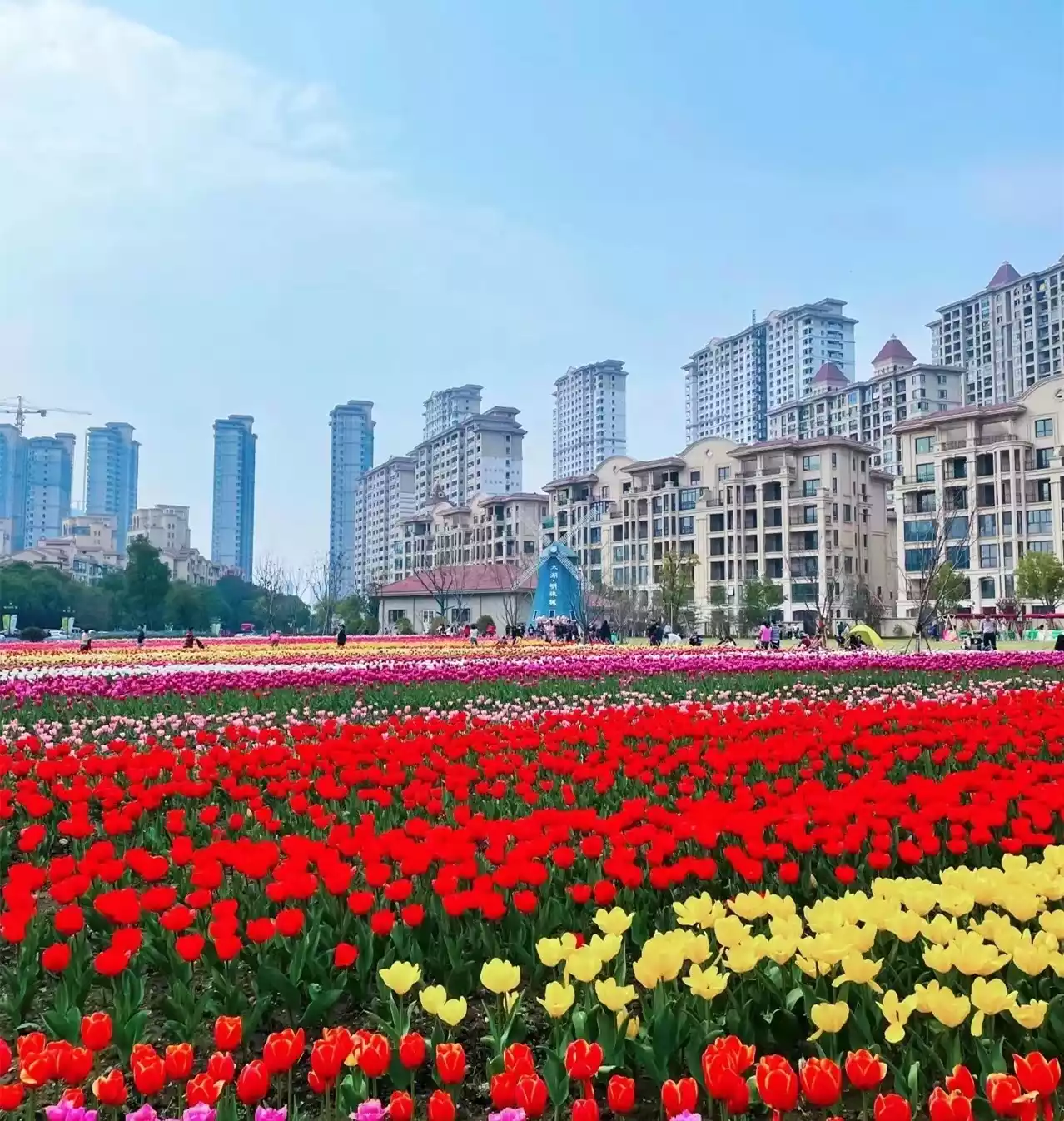The rich and gorgeous tulips embody this fashionable and romantic atmosphere, becoming a beautiful landscape in Suzhou.