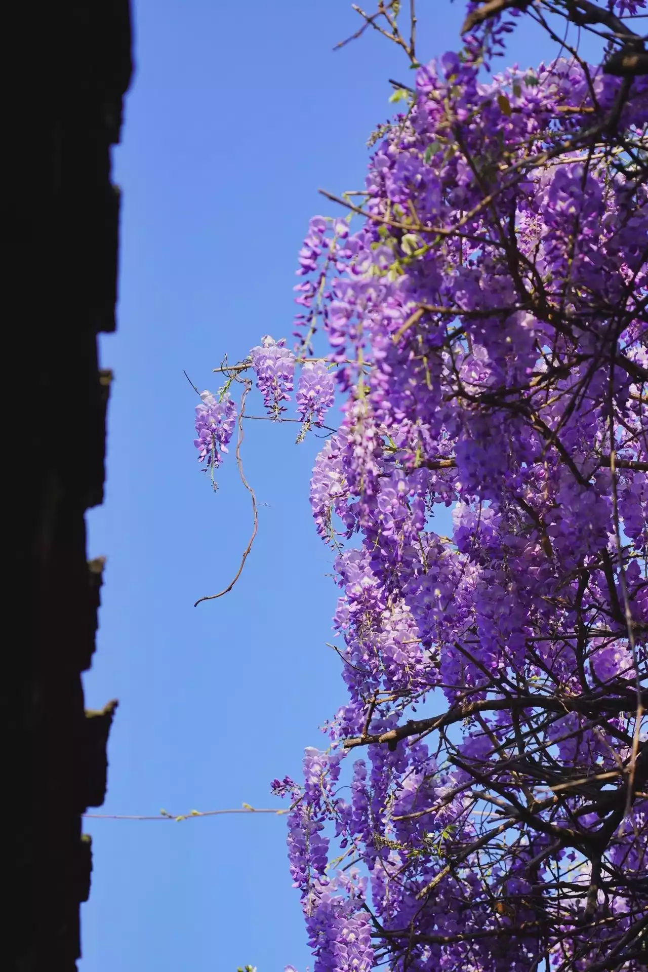 Features: Suzhou's oldest wisteria, though it's a shame you can't experience its charm in person. The tree stands five meters tall, its gray-brown branches winding like dragons and snakes. Clusters of large flower spikes dangle from its branches, their purple tinged with blue, resembling clouds. Authoritative identification suggests the wisteria at Suzhou No. 1 Middle School is at least 800 to 900 years old.