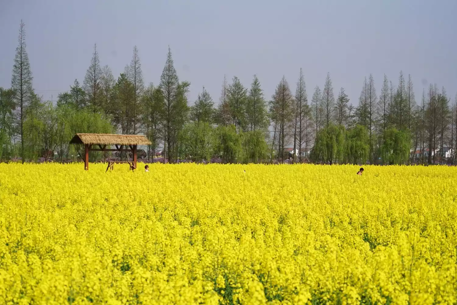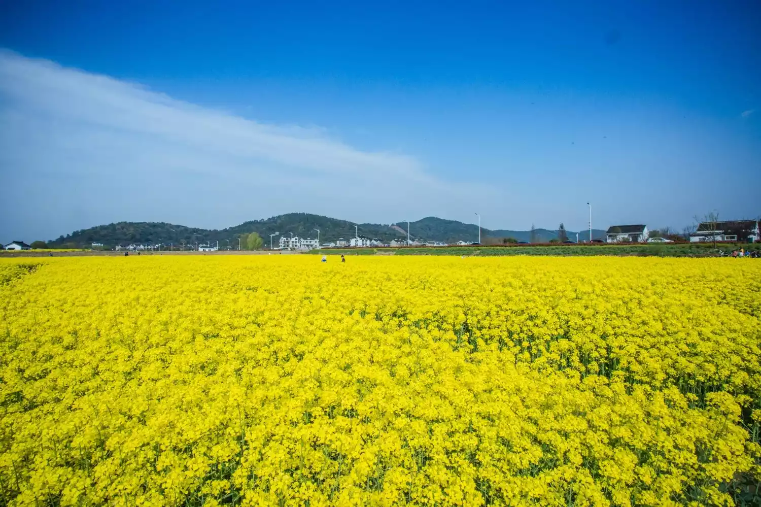 Around mid-March, rapeseed flowers have begun to bloom, covering the mountains and plains like a golden sea of flowers. The spring breeze blows, and the small yellow flowers sway gracefully in the wind.