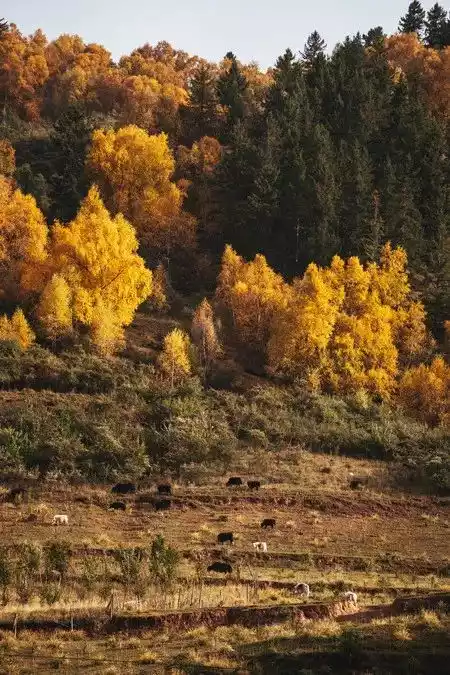 The colorful forests of Beishan are mixed with red, and the colors are brilliant. There are herds of cattle and sheep in the secret autumn realm of Helm's Deep. We walked through the 80-mile golden poplar and birch corridor and enjoyed the autumn in the northwest.