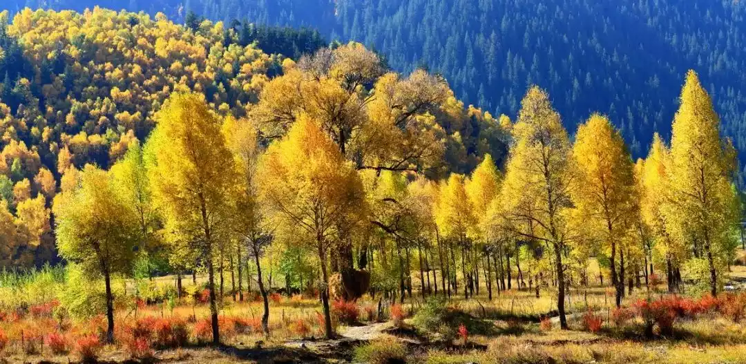 Every autumn, the mountains are covered with colorful forests, and the secluded Tibetan villages in the valleys are hidden among the golden forests. In the evening, curls of smoke rise from the valleys, and cattle and sheep graze leisurely... This is what a paradise is like.