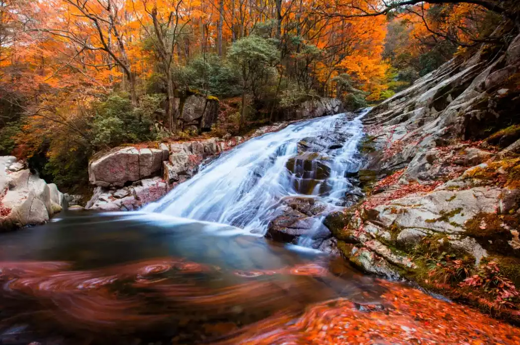 This place is known as "the longest natural red carpet in Asia". The area where red leaves can be viewed is 680 square kilometers, and more than 40 different species of trees form a colorful world.
