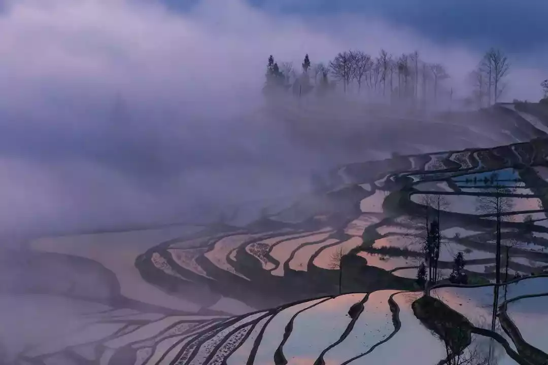 The terraces are irrigated and maintained from November to April of the following year. Thousands of acres of terraces dyed the sky blue stretch out beneath your feet. It is hard to find the right words to describe the shock in your heart. It is worthy of being one of the "Seven Greatest Cultural Landscapes in the World" and has been rated as one of the "50 Places You Must Visit in Your Lifetime".