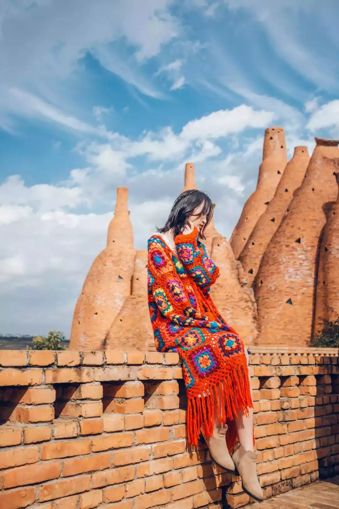 Put on a bright long skirt and match it with the unique Yunnan blue. Whether you are standing against the wall or sitting on the ground, you can create great photos from every angle.