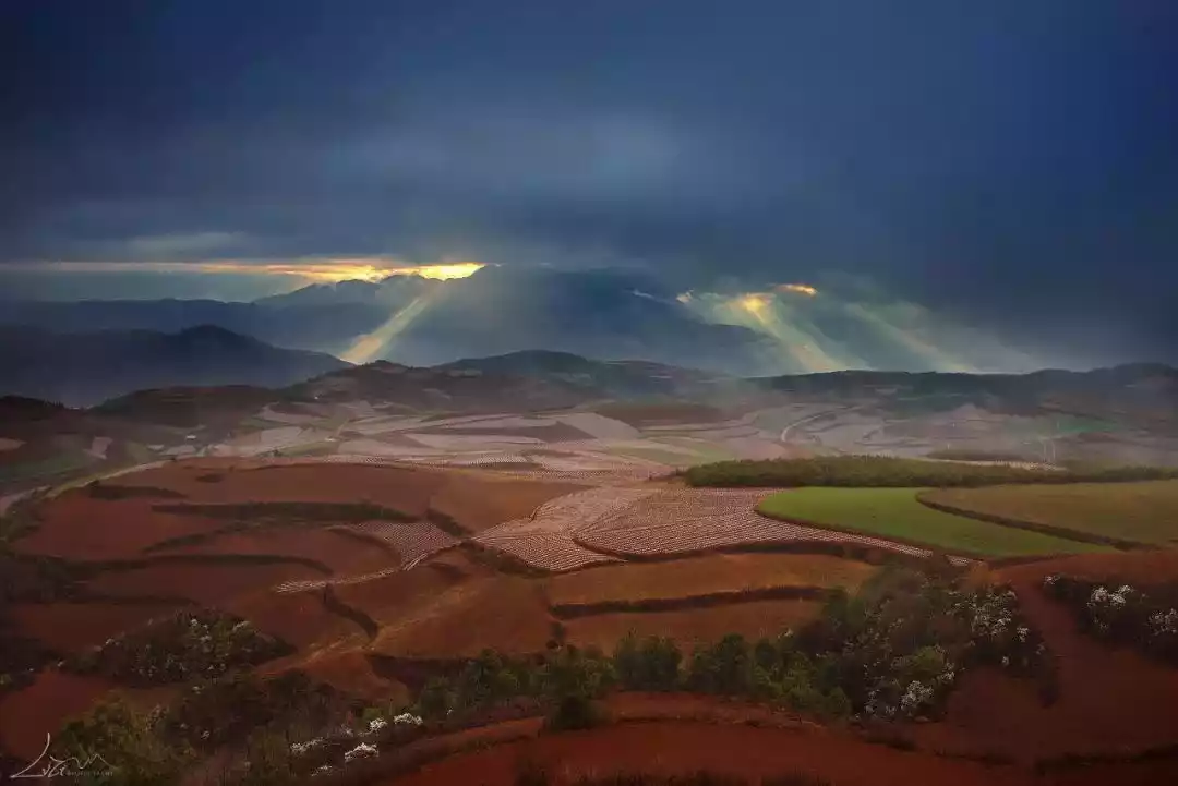 At sunrise and sunset, the light shines on the undulating red earth. The changes in light brought by the clouds create contrasts between light and dark, bringing different color perceptions and adding to the charm. One cannot help but admire the ingenuity of the Creator.