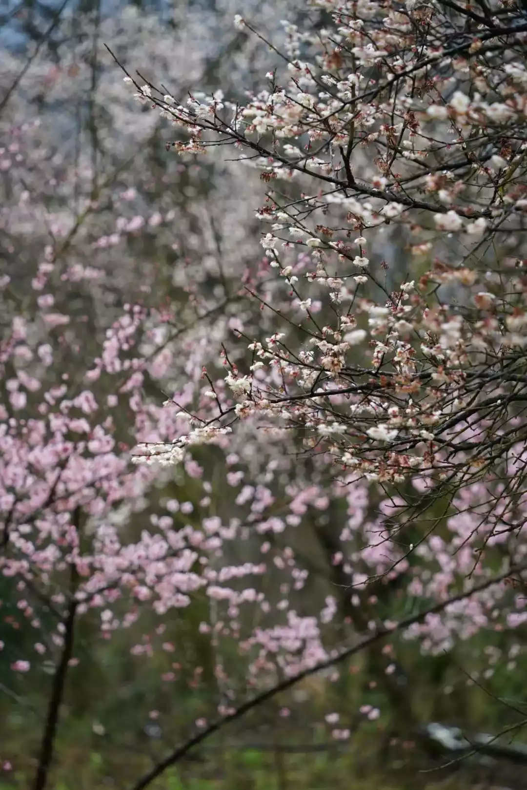 In fact, on the slopes of Jiufeng, although plum blossoms are the undisputed protagonist, many other flowers also bloom in this season of blooming mountain flowers, such as mountain peach blossoms, apricot blossoms, locust blossoms, peonies, etc. So while you enjoy the plum blossoms, you might as well savor their charm.