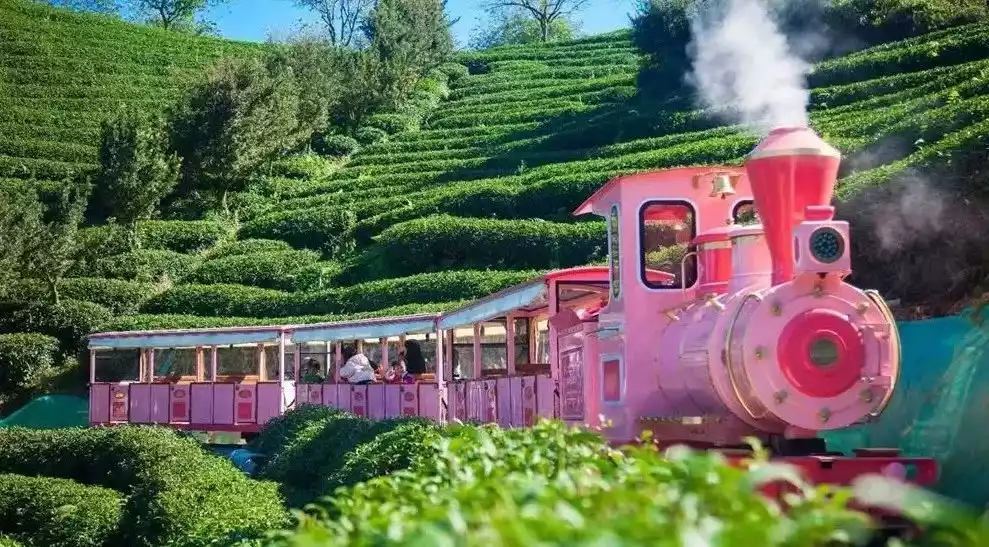 In addition to the beautiful scenery, there is also the popular cherry blossom train that is 1,000 meters long and runs through the tea mountains.