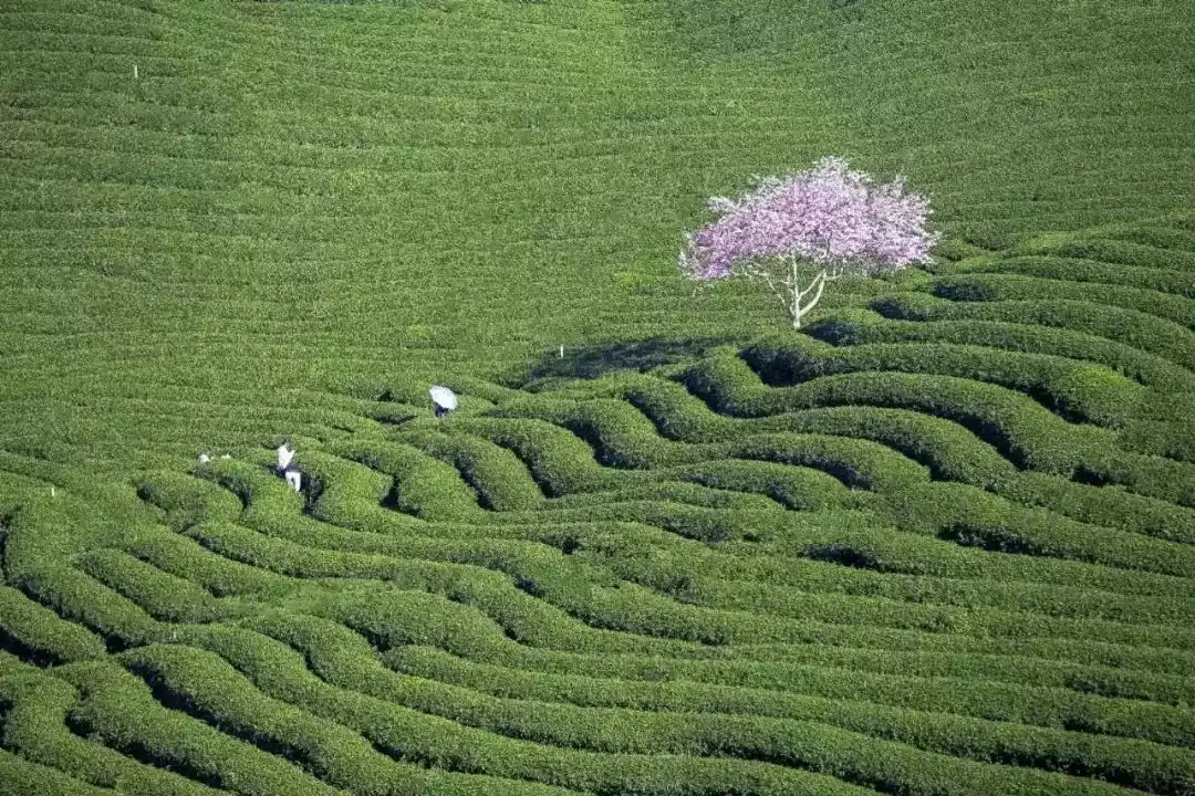 On the tea mountains covering more than 50,000 mu, strolling in the garden of 100,000 cherry trees, breathing in the fresh air of nature, it feels like entering a paradise.