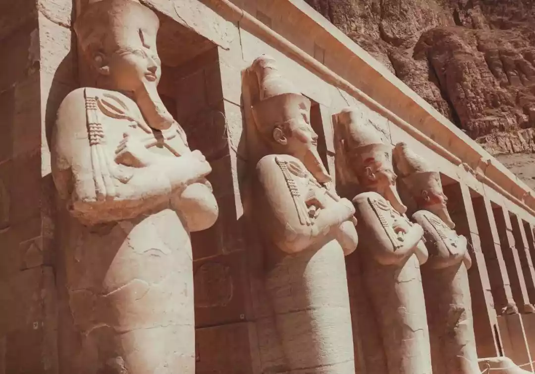 The temple consists of three platforms. The exquisite murals record the unprecedented prosperity of Egypt's trade with neighboring countries during the queen's reign, as well as sacrificial scenes. The statue with its arms folded across its chest seems to be waiting for some divine summons.