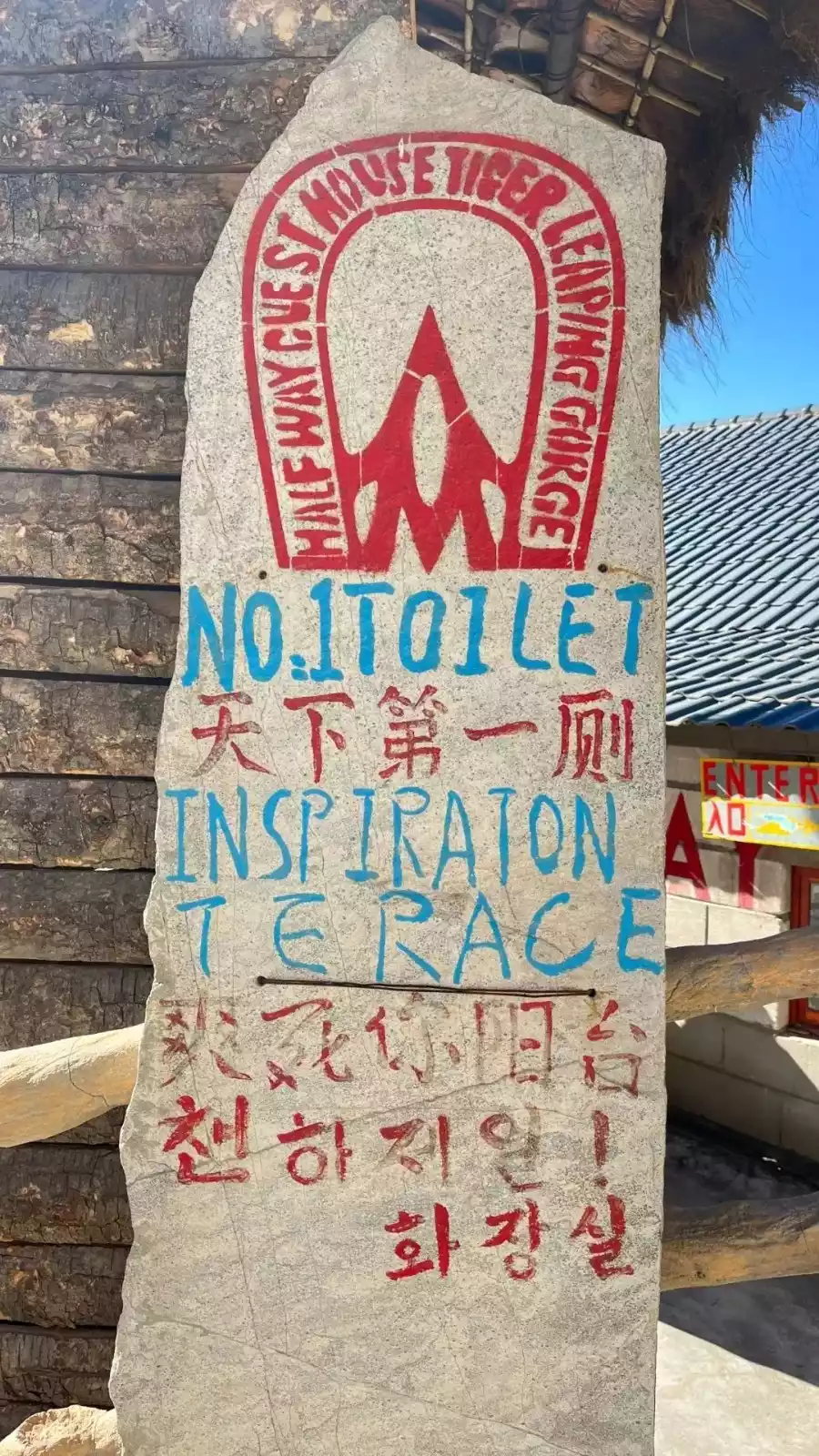 Why is it called this? Maybe it’s because when you go to the toilet, you can look down at the surging Jinsha River and look up at the Jade Dragon Mountain that pierces the sky. This experience is not available everywhere.