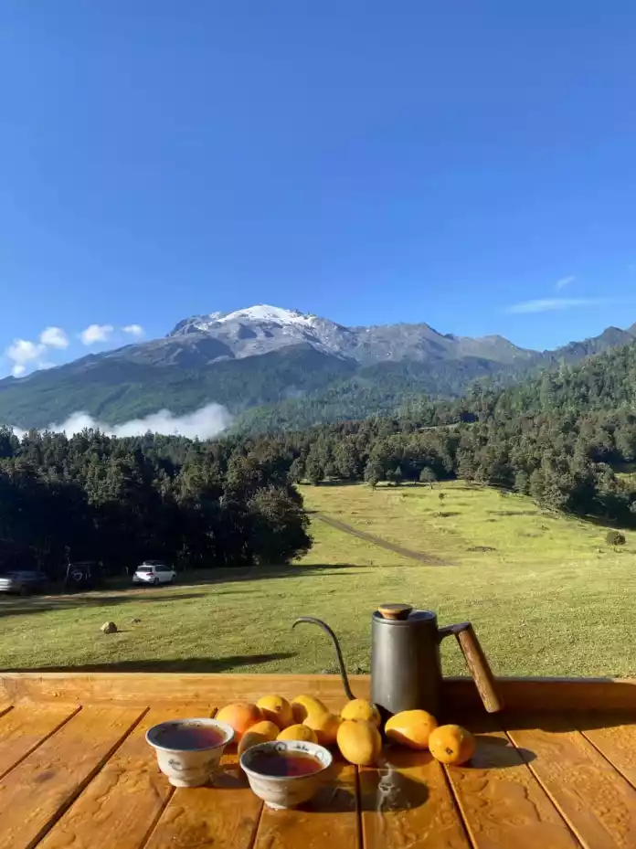 Dela Ranch Campground faces Haba Snow Mountain, offering a 360-degree panoramic view, immersing us under a thousand stars and above alpine meadows. At night, we gather around a campfire, sipping hot drinks, unwinding from our busy schedules, chatting with friends about the mundane details of life and rediscovering the love and peace we've lost.