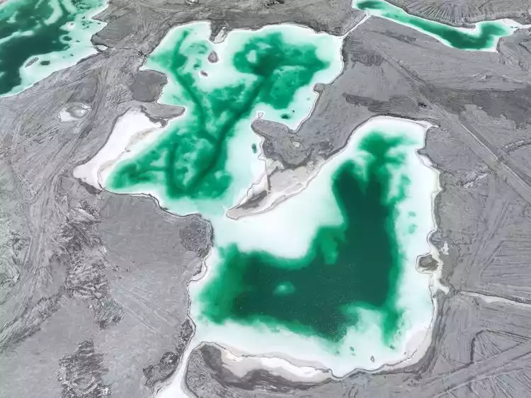 The diverse salt ponds of Da Qaidam Emerald Lake resemble crystal-clear jade. This former mining area of the Da Qaidam Chemical Plant's salt lake mining team, formed over the years by the mining pits, has become the beautiful Emerald Lake we see today. Standing by the lake, the mirror-like surface reflects the blue sky, white clouds, and snow-capped peaks, creating a fairyland-like experience.