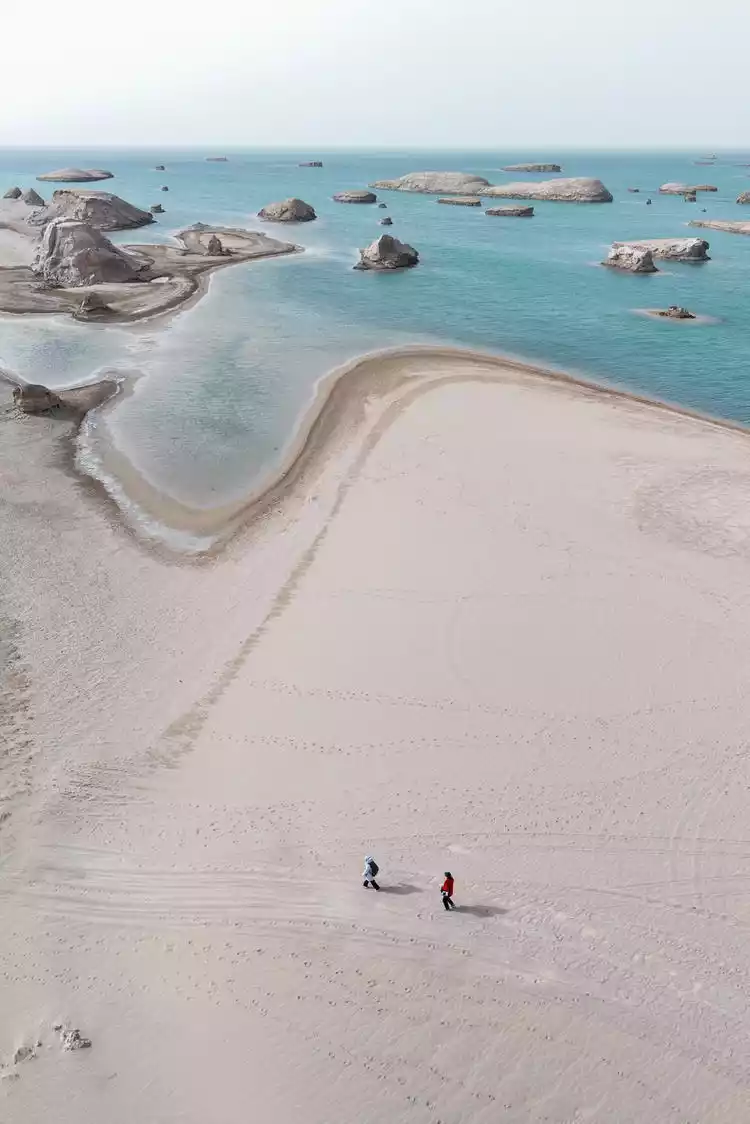 The surface water in Qinghai is high in salt, and the salt minerals are widely distributed, which increases the salinity here. Therefore, when you come here, you can clearly see white salt crystals on the ground after low tide.