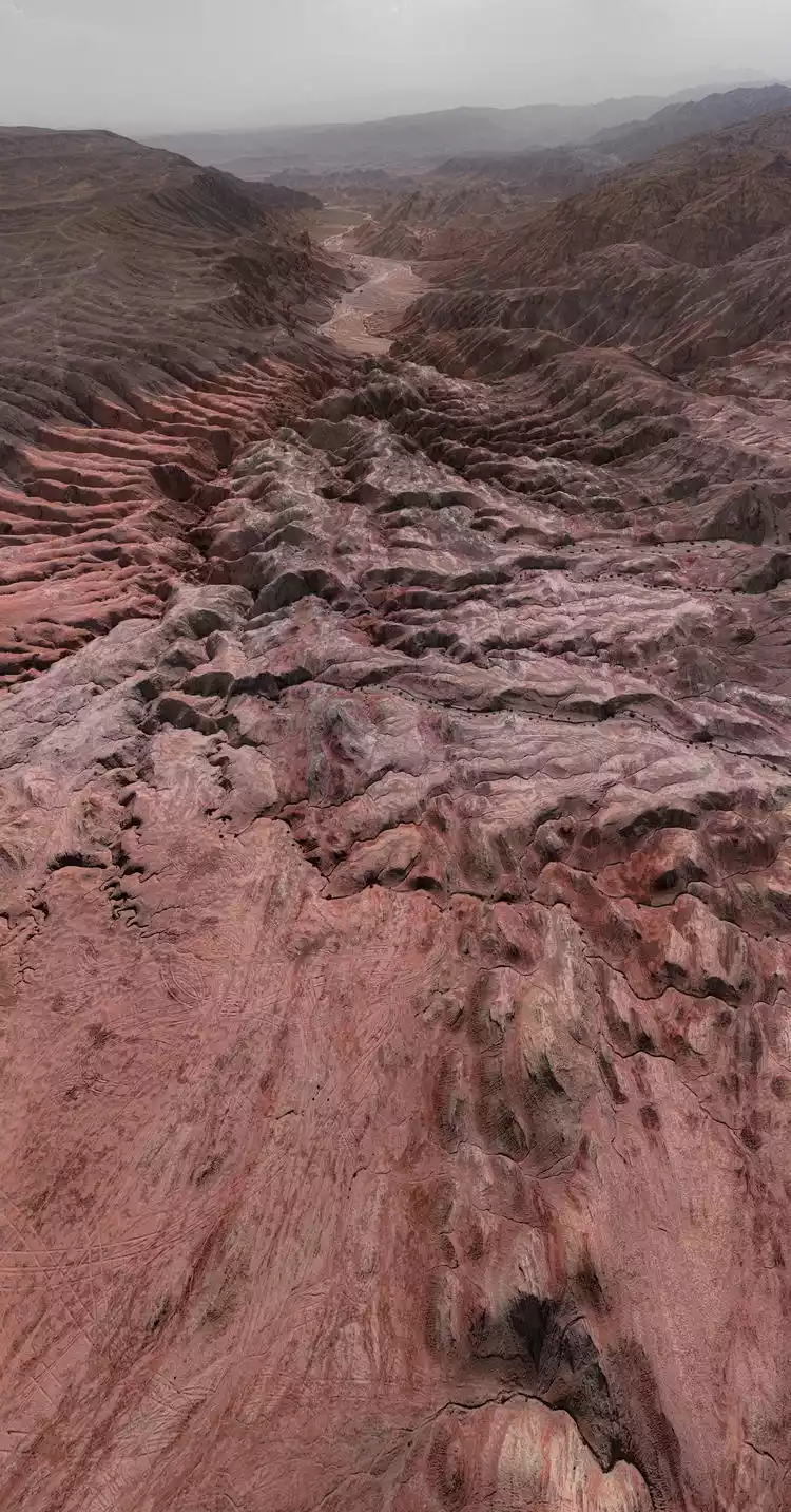 This used to be a river channel. After the river dried up, the riverbed contained ferric oxide. Under the alternating erosion of salt, rain, snow, wind and frost, as well as the influence of some sulfur elements brought from the rock strata by the river water, the valley took on a light rusty red color.