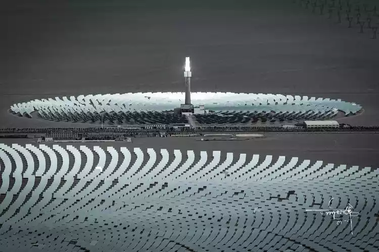 The molten salt tower solar thermal power station, located in the Photovoltaic Industrial Park in Dunhuang City, Gansu Province, was independently designed, invested and constructed by Chinese enterprises. It was connected to the grid and generated electricity at the end of December 2018. It is one of the first batch of national solar thermal power generation demonstration power stations and also the world's tallest and largest molten salt tower solar thermal power station with the largest concentrating area.