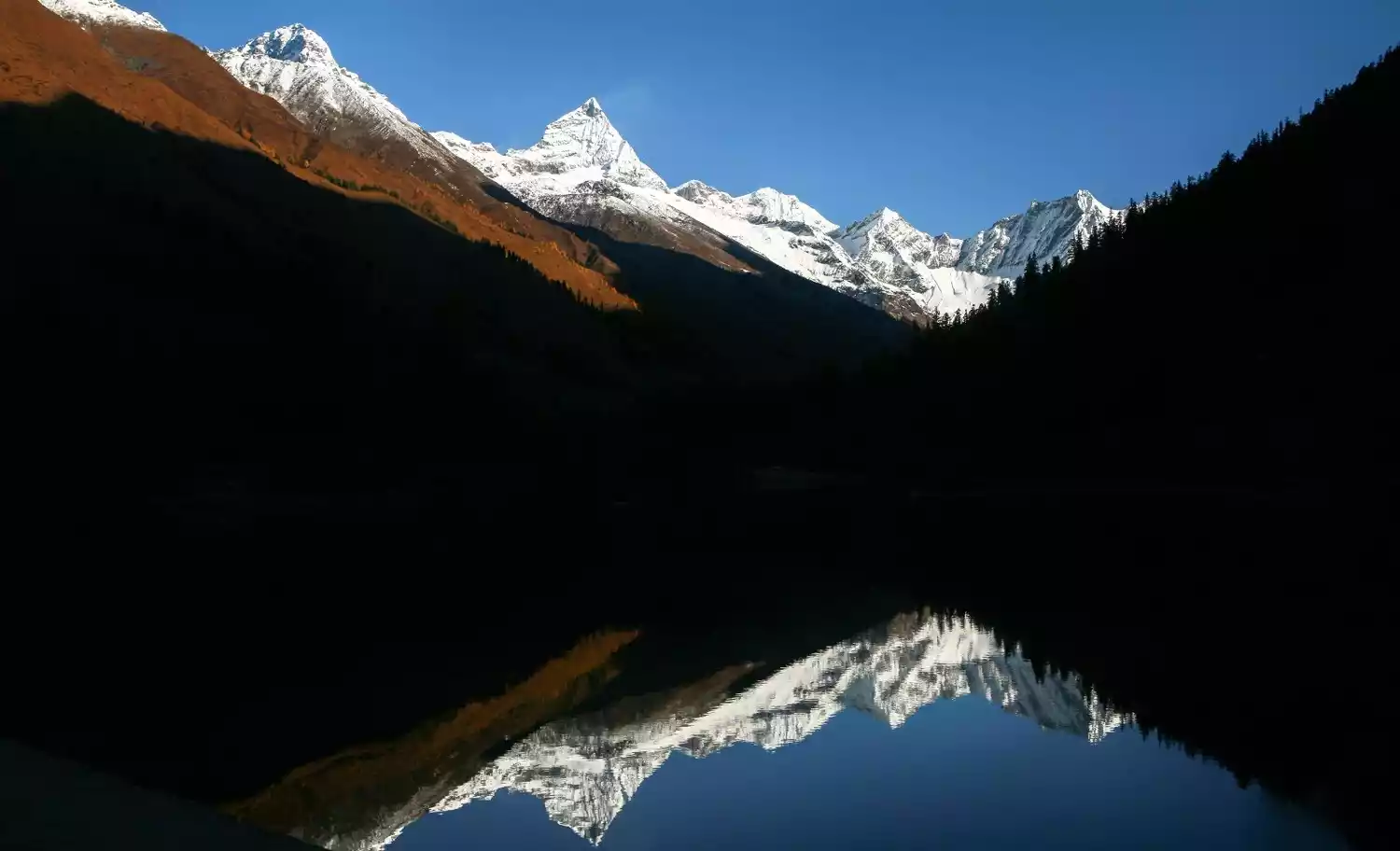 Siguniang Mountain, located in Siguniang Mountain Town, Xiaojin County, Aba City, Sichuan Province, consists of four snow-capped mountains: Yaomei Peak (6250m), Sanfeng Peak (5355m), Erfeng Peak (5276m) and Dafeng Peak (5025m). Snow is accumulated here all year round, like a beautiful girl wearing a white veil, standing gracefully above the two Milky Ways of Changping Valley and Haizi Valley. This is how Siguniang Mountain got its name.