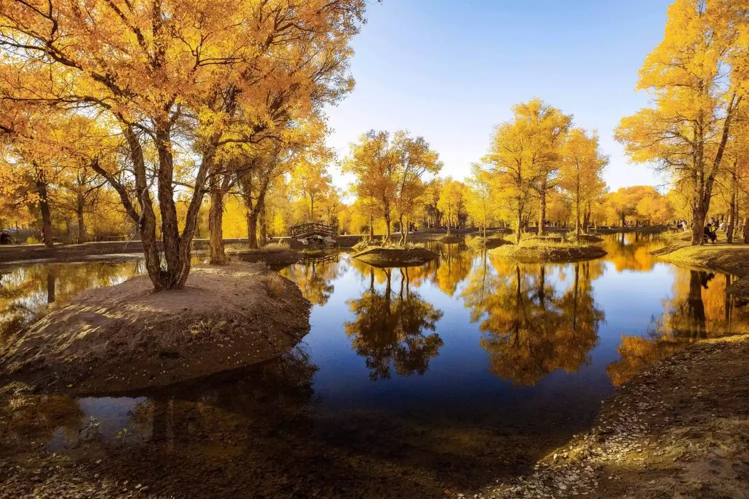The vast Populus euphratica forest scenic area is the world's oldest and largest protected area. A winding river flows through it, punctuated by eight bridges. The scenic area is divided by bridges, and each bridge reveals a new world of poplars.