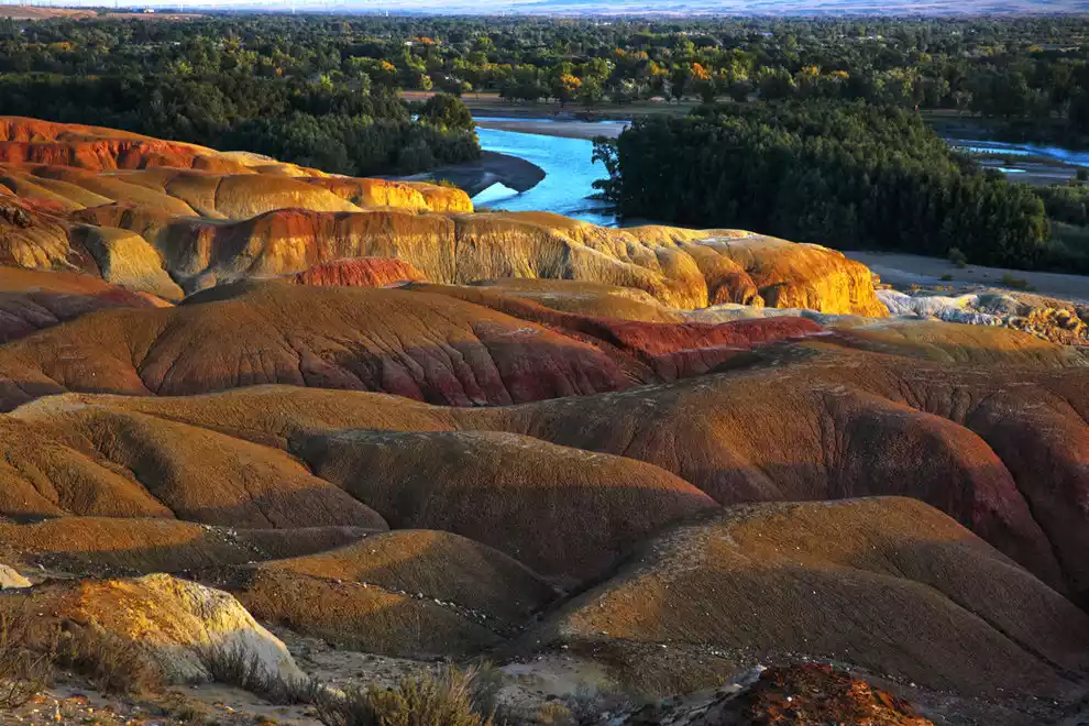 In autumn, Wucai Beach, known as the best beach in the world, is adjacent to the rippling Irtysh River. It is rocky but barren, and contrasts beautifully with the lush and green river valley on the opposite bank.