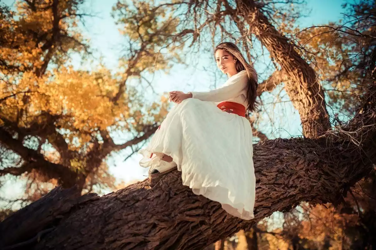 The reason why this Jinta Populus euphratica forest is so large is that it belongs to the Three North Shelterbelt System. It is over ten thousand acres wide and is surrounded by tree species unique to the Northwest, such as saxaul trees, red willows and poplars. After decades of growth, the Populus euphratica gradually grows into a mature adult. In autumn, the green leaves turn yellow, and they appear brighter and more brilliant under the blue sky.