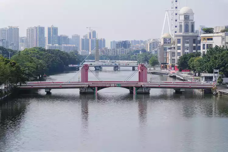 The Qijiang Bridge, spanning the Qijiang River, is a landmark in Zhongshan. On both sides of the river are European-style buildings, a Ferris wheel, and the Tianzi Wharf, where Dr. Sun Yat-sen once visited. Crossing the bridge, we reach the other side of the river, where the old town awaits us.