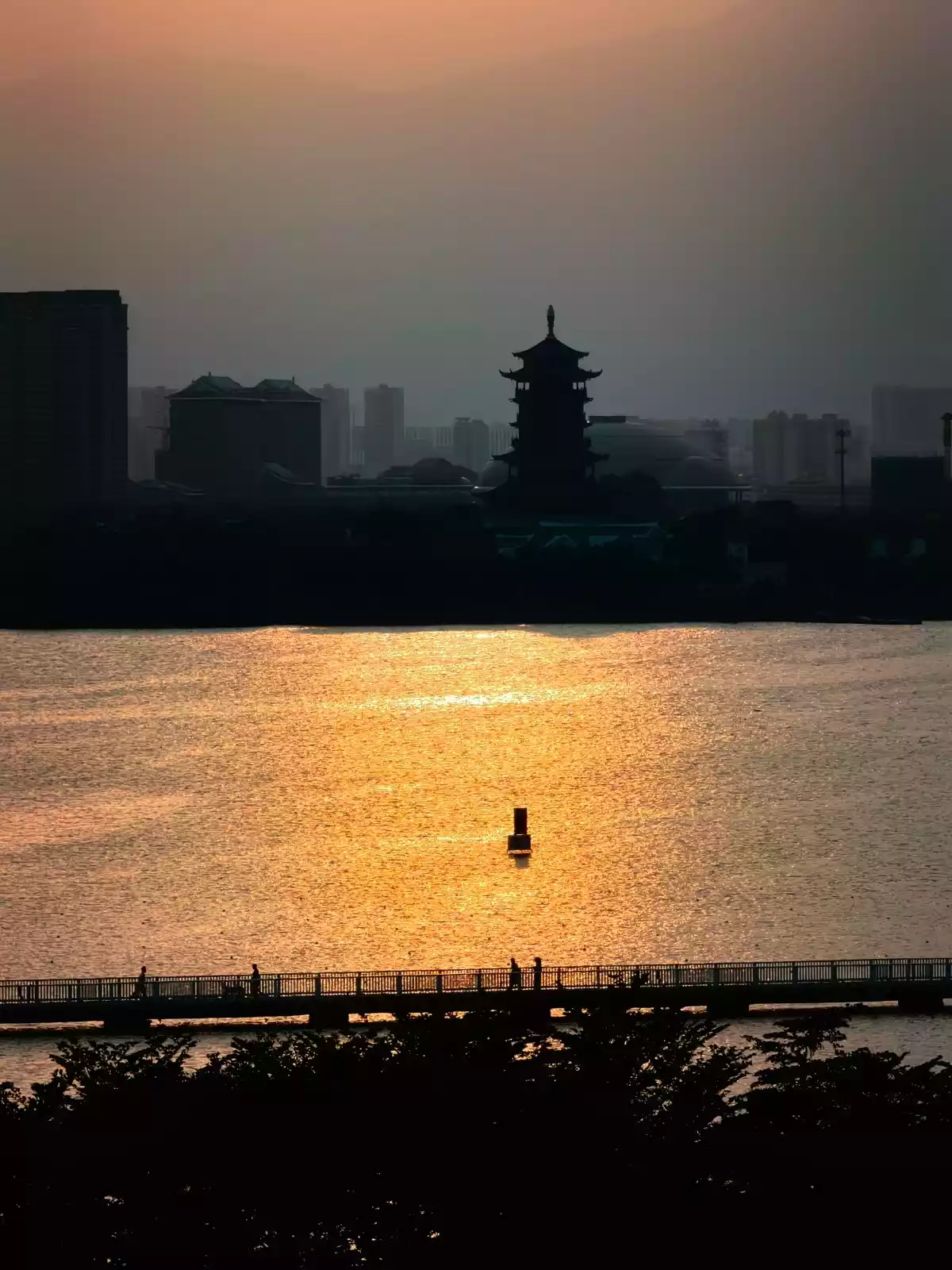 Strolling along the several hundred-meter-long wooden boardwalk by the water, no matter where you stop, you can look up at the iconic Twin Towers, where the contrast between history and modernity is presented in a vivid and harmonious way.