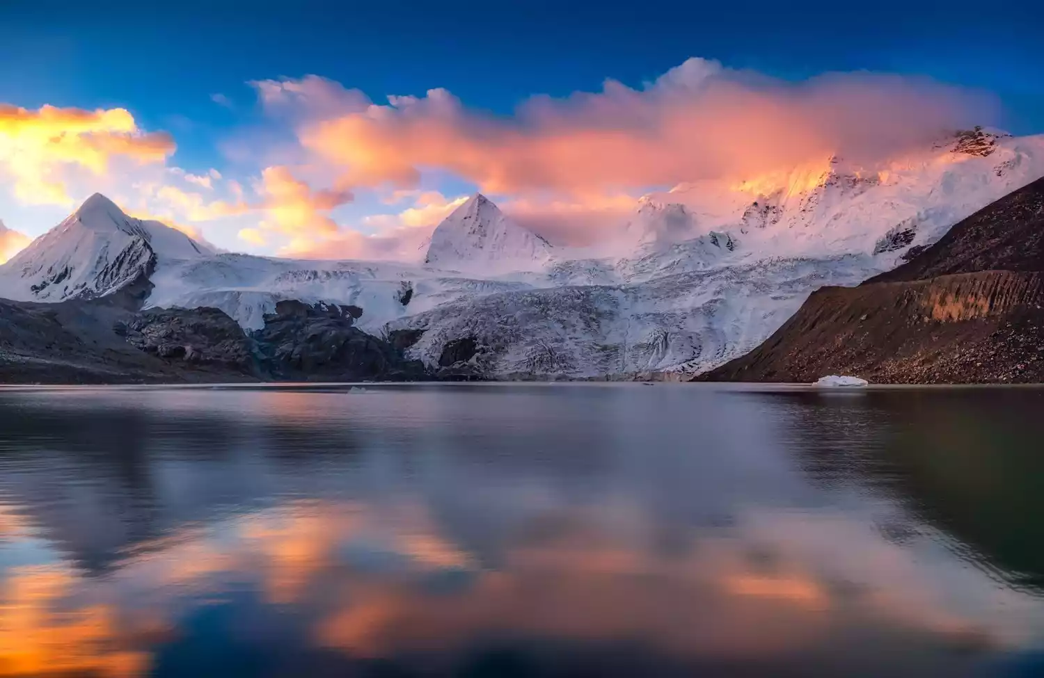 Kulagangri is known as one of the "Four Sacred Mountains" in central Tibet. It stands 7,538 meters above sea level on the main ridge of the middle Himalayas. There are six peaks over 7,000 meters standing next to Kulagangri. From a distance, it looks magnificent and endless. From a close distance, it is full of pressure and shocking.