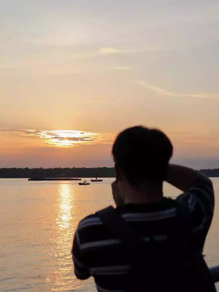This was probably the highlight of the day, as the sun finally came out at sunset, and we were able to experience the romance of the Yangtze River. It was worth our bike ride here. After touring the ancient city, we took a taxi back to the hotel to rest, but we both wanted to visit the Yangtze River again, so we quickly checked the sunset time and transportation options and finally decided to ride there.